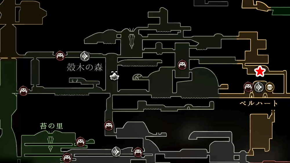 ウィドウは、ベルハートの町の上部に位置する空間に出現するボスだ。ウィドウがいる場所には、殻木の森の上部から接着の爪を使って入る必要があるため、まだ接着の爪を解放していない場合は先に入手しておこう。