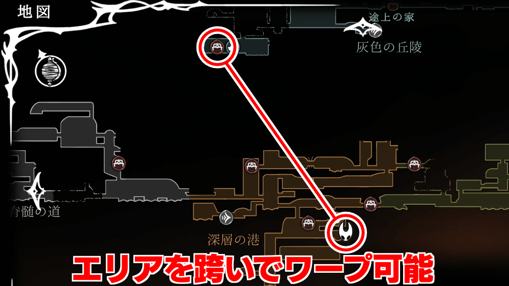 ホロウナイトシルクソングの「ベンチワープ」を解説。シルクソングのベンチワープのやり方や使い所について掲載しています