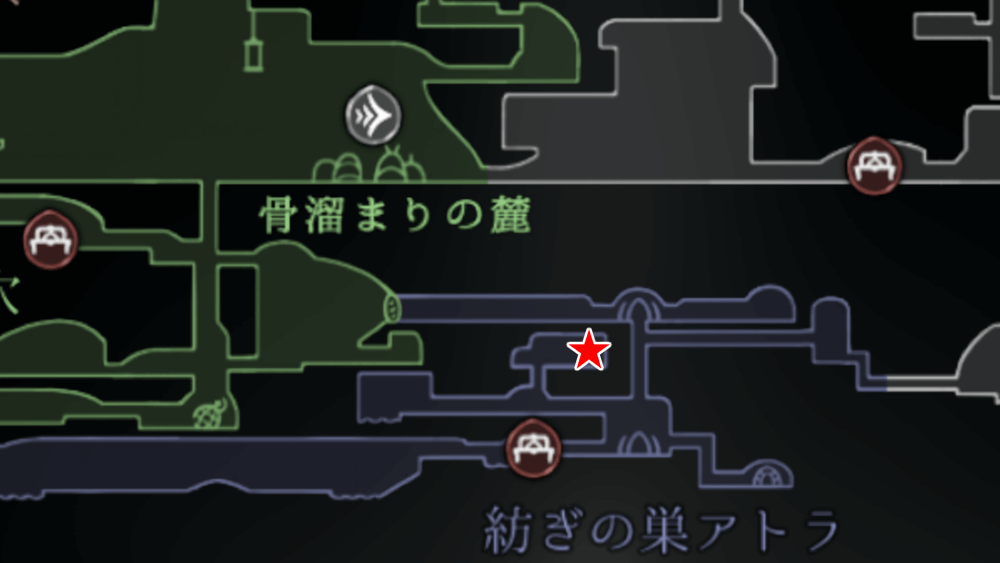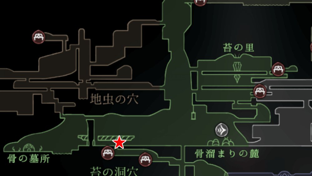 外観 マップ 苔の洞窟に降り、紡ぎの巣アトラで「罠の土台」を入手しよう。また、このタイミングで最奥にいる「エヴァ」に話しかけておくと、クレストソケットを増やしてくれる場合があるので、必ず話しかけよう。