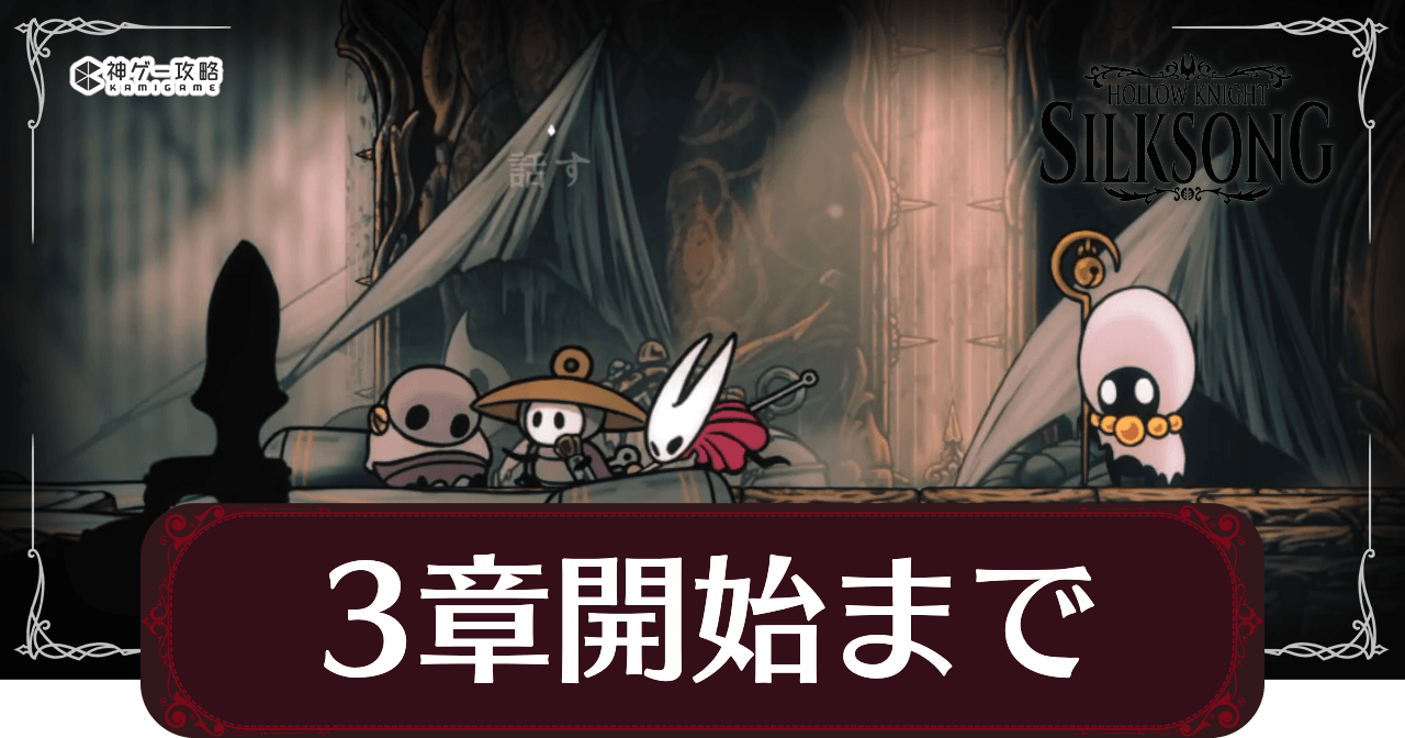 ホロウナイトシルクソングの「3章開始まで」を解説。シルクソング3章開始までの攻略チャートや、入手アイテムなどについて掲載しています。
