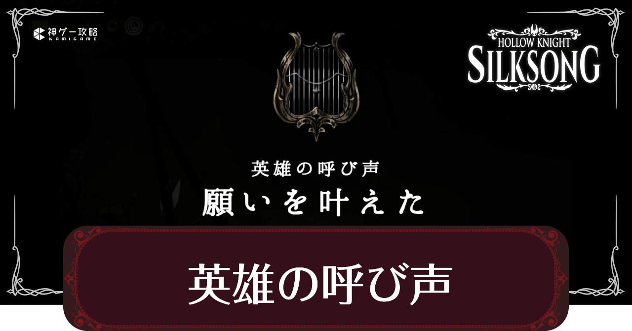 ホロウナイトシルクソングのサブクエスト「英雄の呼び声」を解説。シルクソングのタスク英雄の呼び声の発生場所や漆黒のガーモンドの出現場所、英雄の呼び声クリア時の報酬を掲載しています。