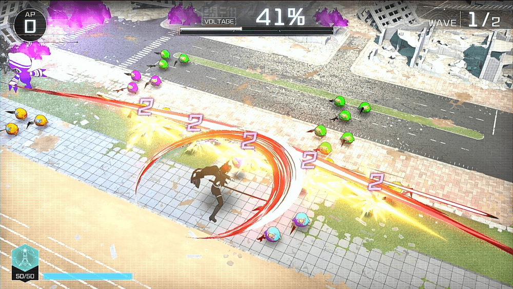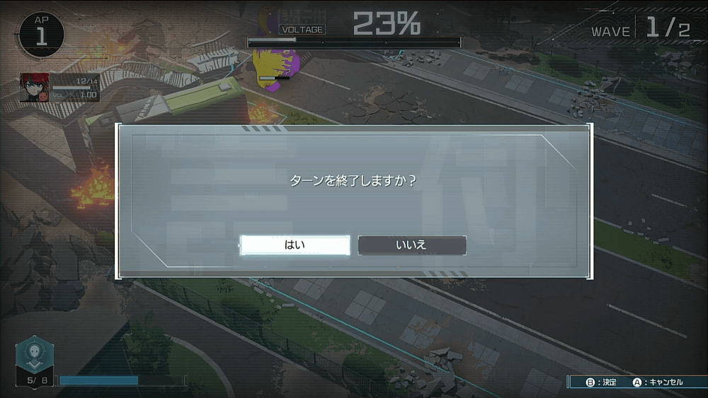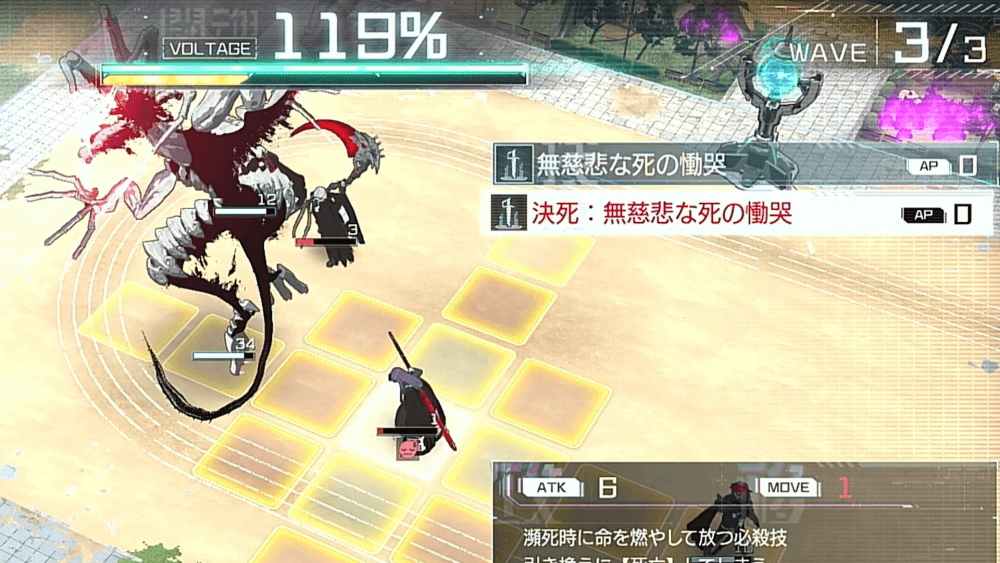 味方キャラクターのHPが5以下になると、決死必殺が使用可能となる。決死必殺はVOLTAGEを消費せずに使う必殺技で、使用後はキャラクターが戦闘不能になる。敵に大ダメージを与えつつ能動的にVOLTAGEを溜められるうえ、WAVEをクリアすればすぐに味方は復活するため、劣勢を覆せる強力なアクションだ。