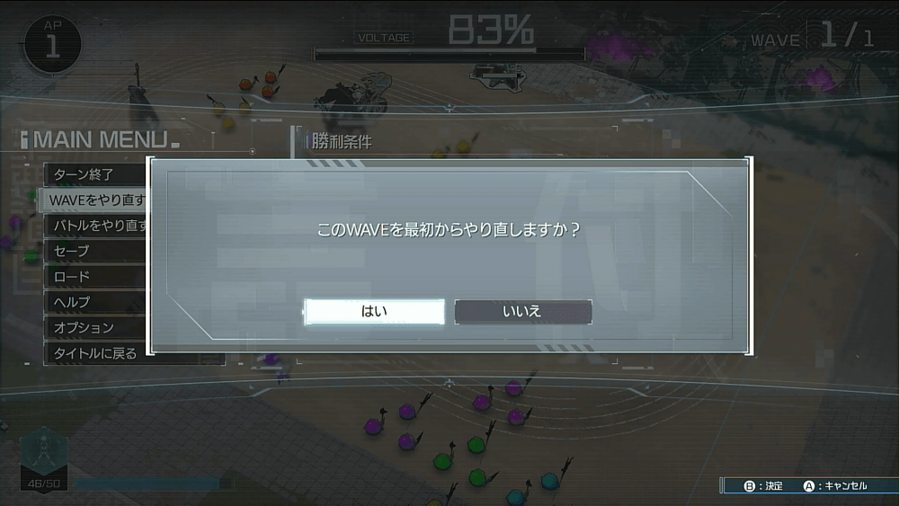 特異復習「バトルをやり直す」「WAVEをやり直す」が使える |