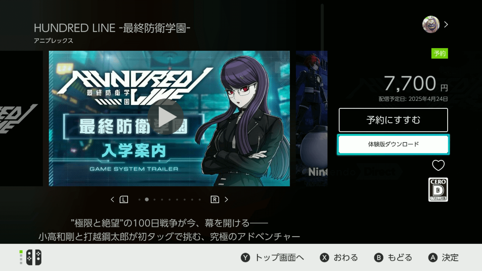 ハンドレッドラインはPS5やXboxは未対応で、体験版はプレイできない。同様に製品版も発売予定はない。