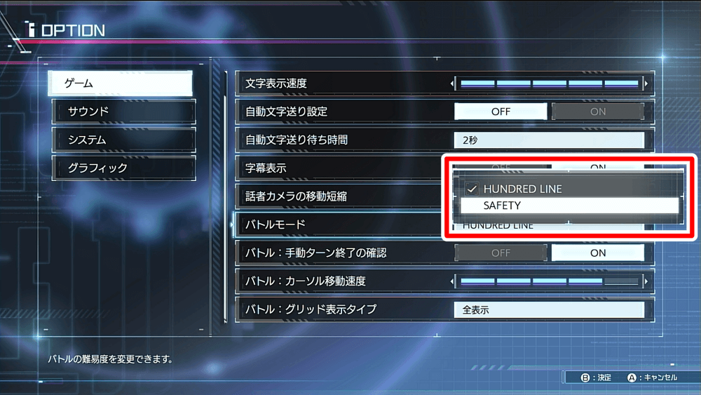 どうしてもボスに勝てない時は、難易度を「SAFETY」に変更するのも手だ。難易度SAFETYでは定期的にキャラクターのHPが回復し、状態異常が治るため、通常の難易度よりも楽にゲームを進められる。