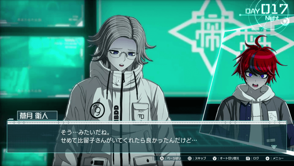 | 15日目 | 午前 ・食堂で雫原の話を聞く午後 ・九十九兄妹と銀崎に声を掛ける夜 ・蒼月と雫原と話をする |