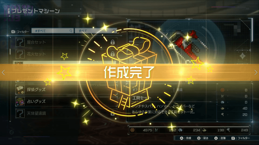 | 19日目 | 解放要素 ・図書室とガレージが解放 ・VR訓練★2が解放午前 ・追加された施設を見て回る |