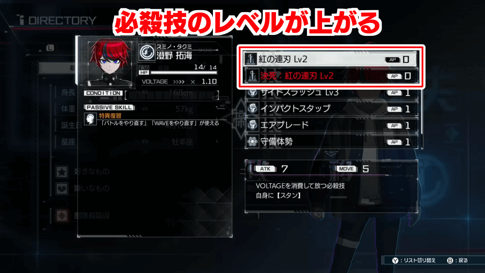部隊長へのトドメを刺したキャラは、必殺技のダメージが+1される。必殺技の性能はキャラによって異なるため、使い勝手の良い必殺技を持っているキャラを強化するのがおすすめだ。