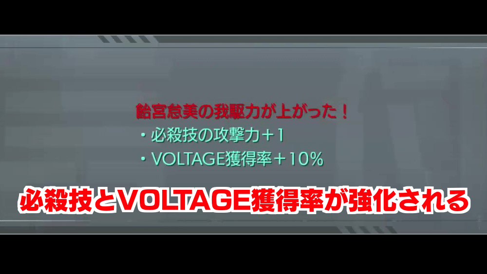 部隊長へのトドメを刺したキャラは、VOLTAGE獲得率が+10%される。VOLTAGEは敵を攻撃した時などに溜まるため、よく行動させるキャラを強化した方がVOLTAGEが溜まりやすくなる。