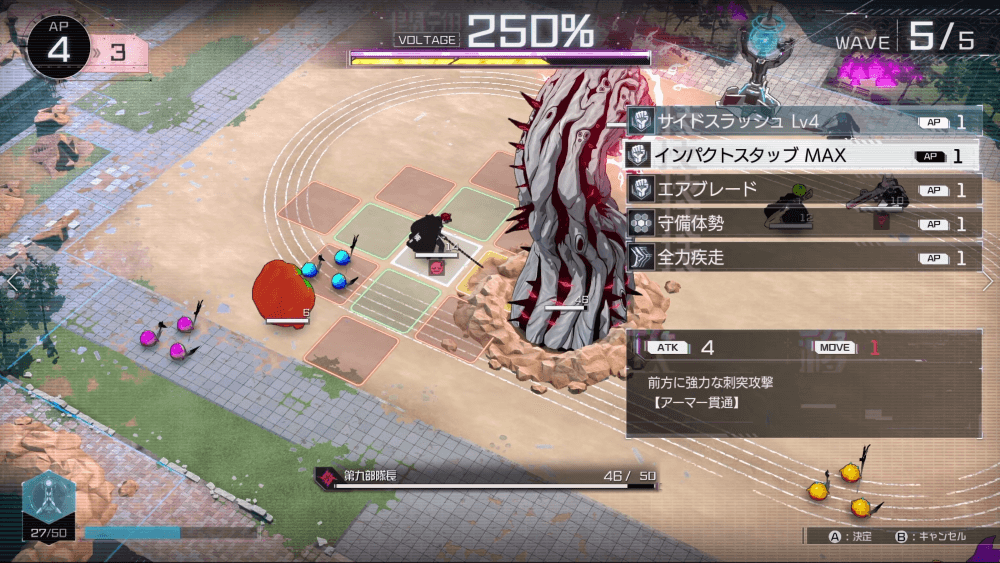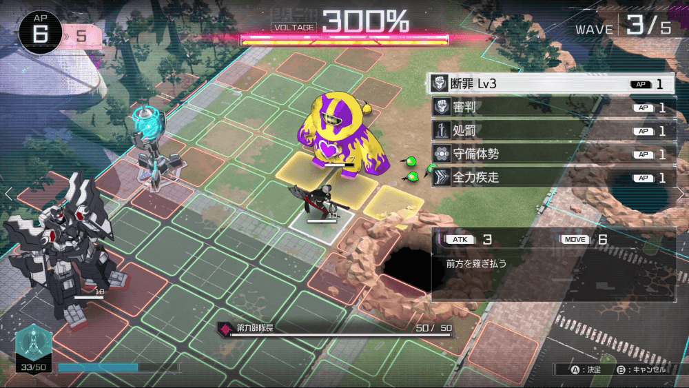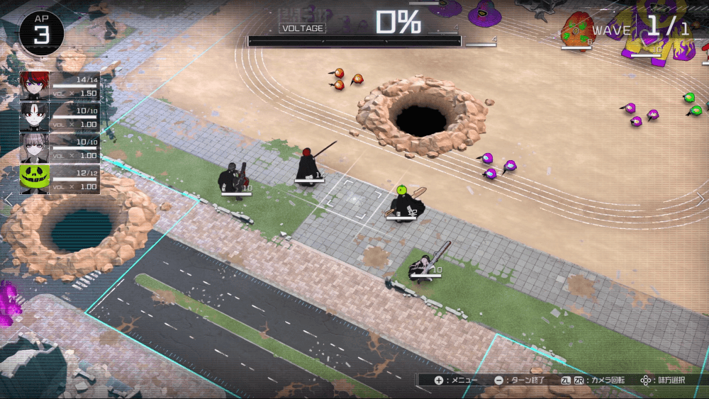WAVE2~4は、エリアに空けられた穴が邪魔で移動がしづらいため、基本的には前に出るより待ち構えながら戦うのが楽。敵との距離が遠い1ターン目などは、くららのタレットや銀崎のカウンターだけ発動させて、残りのAPは次のターンに温存しよう。