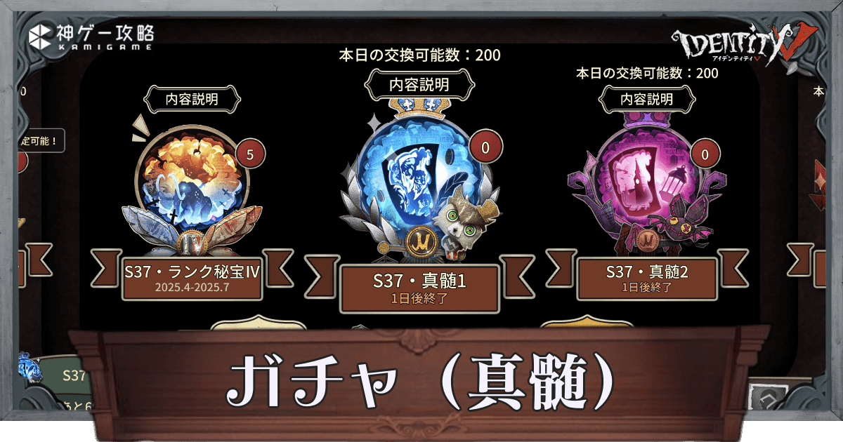 第五人格(IdentityV)の開催中のガチャ(真髄)と仕様を紹介。各ガチャの目玉アイテムや排出確率、凝集した真髄についても掲載しているため、第五人格でガチャについて知りたい時の参考にどうぞ。