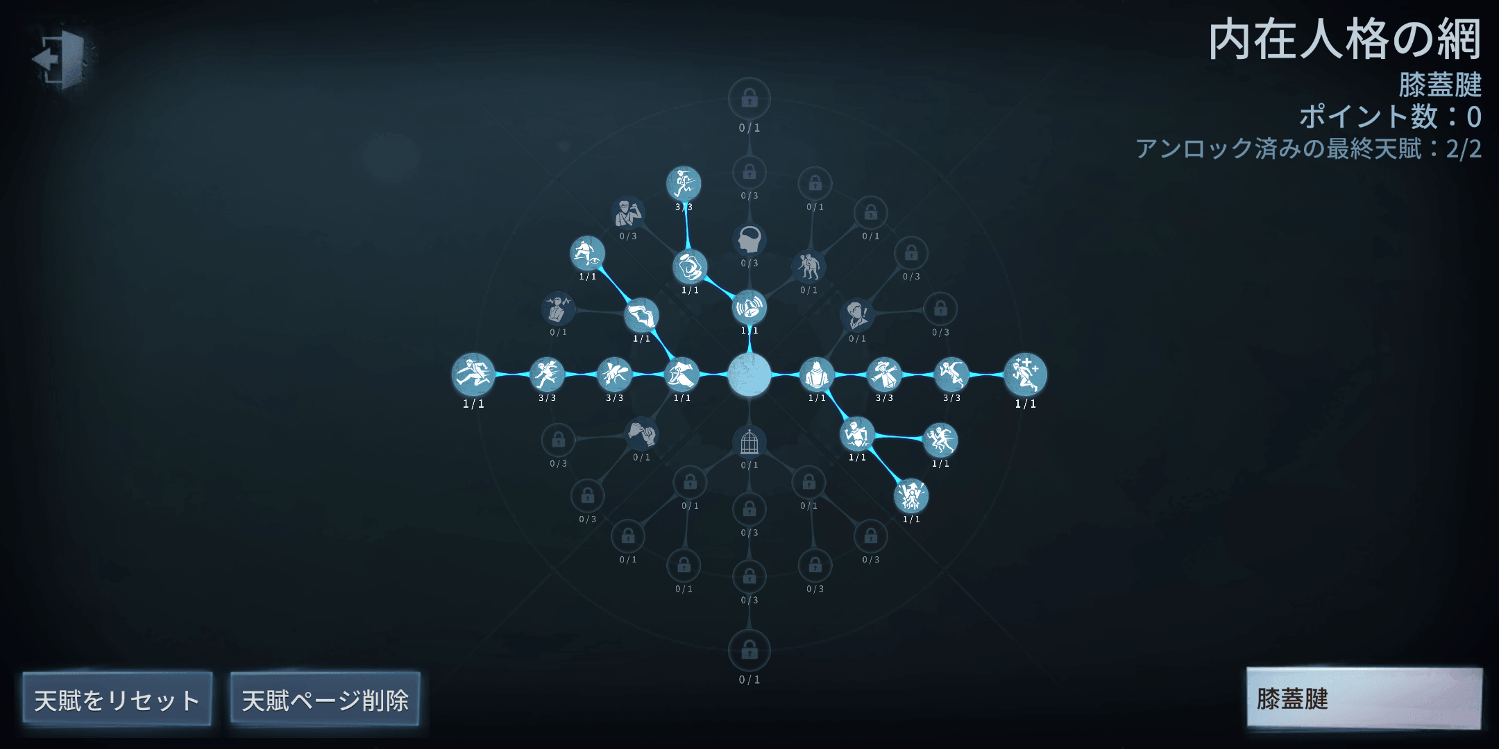 ・板や窓を乗り越えると3秒間移動速度が40%上昇 ・人格の膝蓋腱反射を採用している場合は膝蓋腱反射が先に発動する |