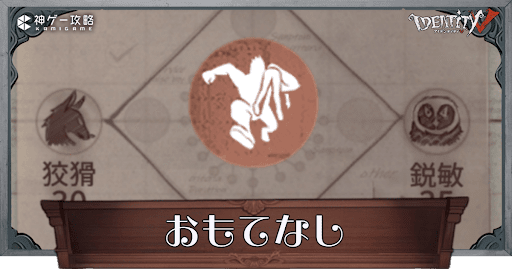 第五人格(IdentityV)のハンター人格「おもてなし」について掲載中!「おもてなし」の性能や効果解説についても記載しているので、「おもてなし」を詳しく知りたいかたはぜひ参考にどうぞ!
