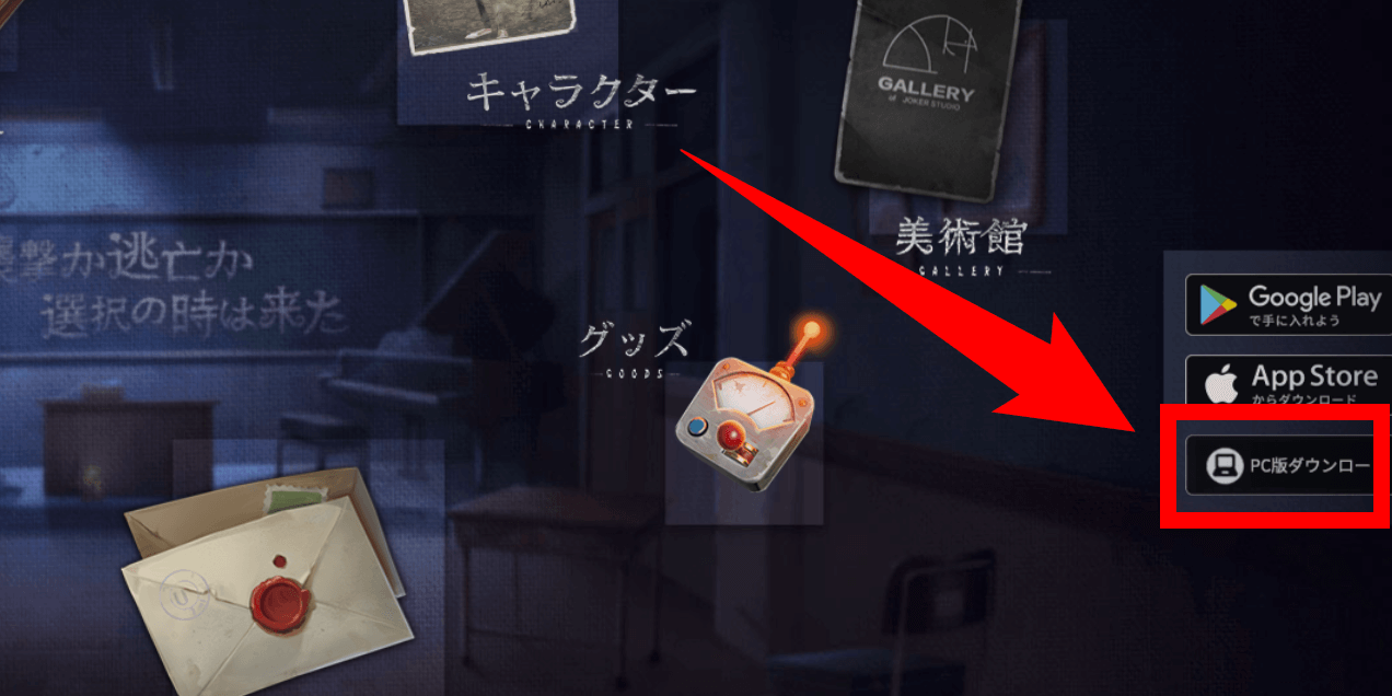 第五人格のPC版は、公式サイトからダウンロードできる。公式サイト画面右の「PC版ダウンロード」をクリックすると、自動でダウンロードが始まる。