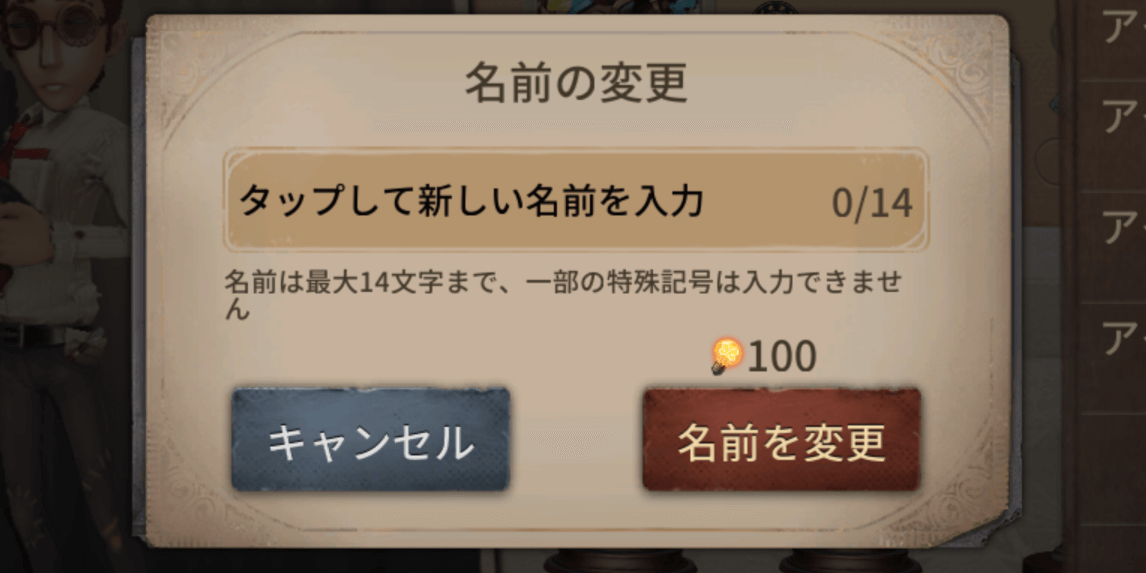 名前変更は初回のみ無料で、2回目以降は費用がかかる。1回変更する度に霊感が100必要なので、じっくり考えて変更しよう。