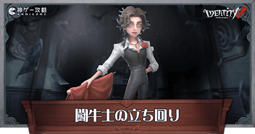 第五人格(IdentityV)のサバイバー『闘牛士/エルナンド・ロメロ』の特徴や立ち回りについて掲載中!外在特質(特殊能力)の効果のほか、長所短所についても記載しているので、闘牛士を詳しく知りたいかたはぜひ参考にどうぞ!