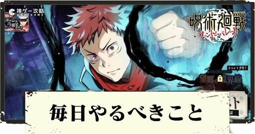 呪術廻戦ファントムパレード(ファンパレ)の毎日やるべきことまとめを紹介。「じゅがいさんぽ」や有償ガチャについても掲載しているので参考にどうぞ。