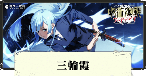 三輪霞SRはスキル2「集中」により自身に2ターン引き付けと回避1回を付与できるのが特徴で、敵の危険な単体攻撃を受け止めて無効化できるためタンク役として有用だ。ただし、呪力消費が30と重めで連発は難しいため、タンクすべきタイミングをしっかり見極める必要がある。