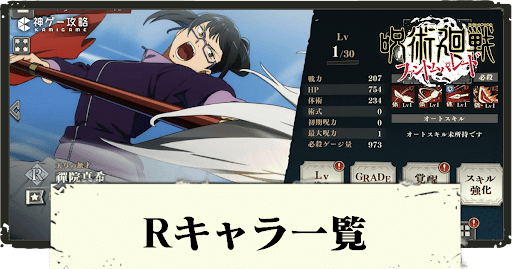 呪術廻戦ファントムパレード(ファンパレ)のRキャラを紹介。Rキャラのステータスやスキルと評価についても掲載しているので参考にどうぞ。