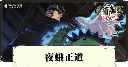 夜蛾正道SRはスキル2「後進への導き」で味方全員の体術と術式をバフできるのが非常に優秀だ。バフ倍率や持続時間も良好なうえ呪力消費20と低燃費であり、味方が体術寄りでも術式寄りでも効果があるため、どんなパーティでも火力バッファーとして貢献できる。
