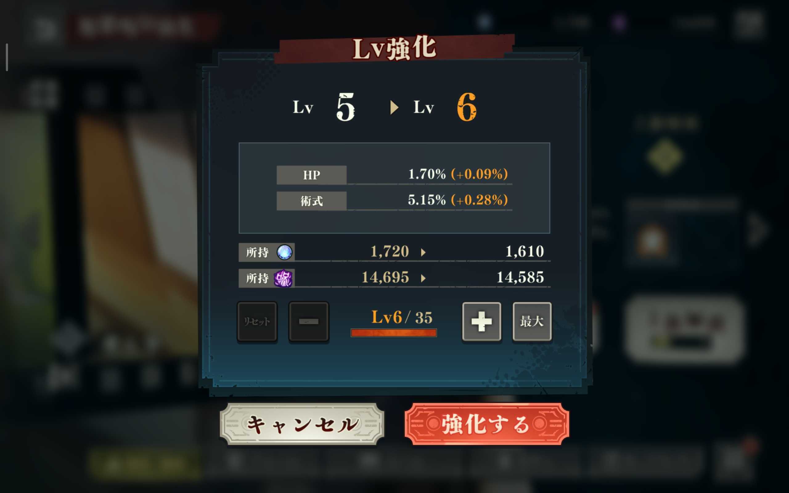 Rの廻想残滓は、ガチャで集まりやすく強化がしやすい。上限解放するとレベル上限が上がるだけではなく、スキルも強化されるため、最大強化すればSR廻想残滓以上のステータス向上効果を得られる。