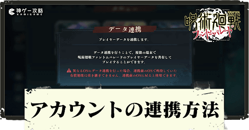 呪術廻戦ファントムパレード(ファンパレ)のアカウント連携を紹介。アカウント連携のやり方や手順、豆知識についても掲載しているので参考にどうぞ。