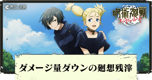 呪術廻戦ファントムパレード(ファンパレ)のダメージ量ダウン持ち廻想残滓を紹介。廻想残滓(かいそうざんし)の効果や使い方をはじめ、レアリティやクールタイムなども一覧形式で掲載しているので参考にどうぞ。