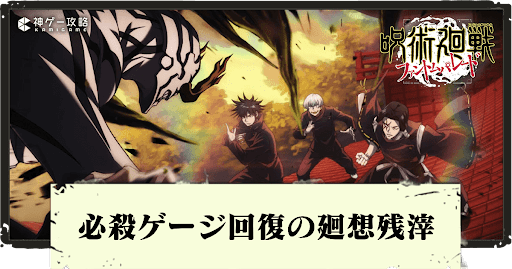 呪術廻戦ファントムパレード(ファンパレ)の必殺ゲージ回復持ち廻想残滓を紹介。廻想残滓(かいそうざんし)の効果や使い方をはじめ、レアリティやクールタイムなども一覧形式で掲載しているので参考にどうぞ。