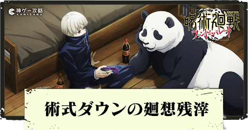 呪術廻戦ファントムパレード(ファンパレ)の術式ダウン持ち廻想残滓を紹介。廻想残滓(かいそうざんし)の効果や使い方をはじめ、レアリティやクールタイムなども一覧形式で掲載しているので参考にどうぞ。