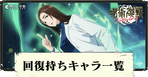 呪術廻戦ファントムパレード(ファンパレ)の回復スキル持ちキャラを紹介。持ちキャラのステータスやスキルと評価についても掲載しているので参考にどうぞ。