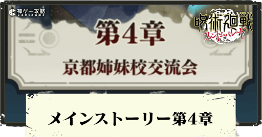 呪術廻戦ファントムパレード(ファンパレ)のメインクエスト4章を紹介。メインクエスト4章のステージ別推奨戦力やおすすめ特性、コンテンツ解放条件や報酬のSR廻想残滓についても掲載しているので参考にどうぞ。