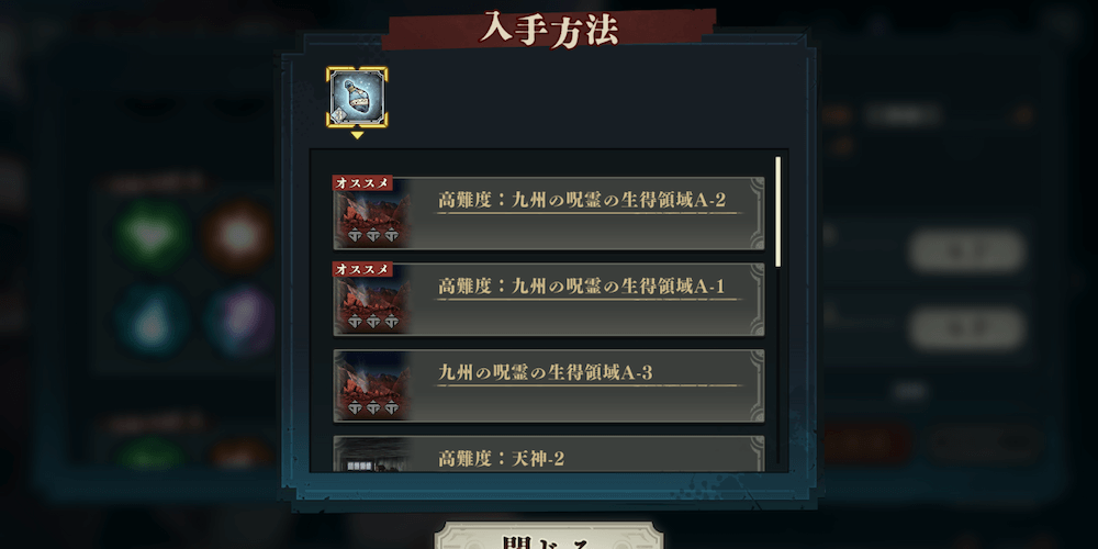 呪物収集クエストを進める際は、キャラのGRADE強化画面から必要素材を確認して「オススメクエスト」に直行するのが有効だ。解放済みのステージの中から目標の呪物を多く入手できるクエストを自動的に見繕ってくれるため、非常に効率的に呪物を集められる。