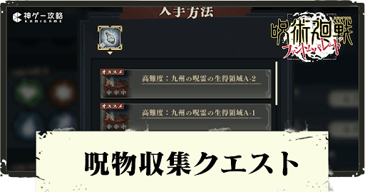 呪術廻戦ファントムパレード(ファンパレ)の呪物収集クエストを紹介。呪物収集クエストの効率的な進め方やクエスト一覧、解放時期についても掲載しているので参考にどうぞ。