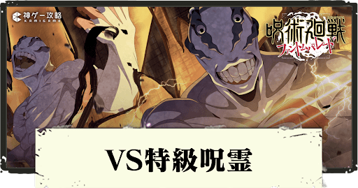 呪術廻戦ファントムパレード(ファンパレ)の強敵邂逅「VS特級呪霊」の攻略方法を紹介。難易度「ハード」「エクストリーム1」「エクストリーム2」ごとの敵を倒すコツやおすすめパーティ、編成に加えるべきキャラも紹介しているため、特級呪霊を倒せない人は参考にどうぞ。