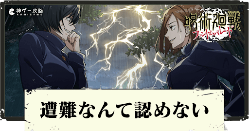 遭難なんて認めないは、会心が発動した際に味方全体の必殺ゲージを2ターンの間上昇できるのが強力。会心を発動しやすいキャラに持たせれば、自然と必殺技を撃てる回数の増加に貢献するため、必殺技が強力な「五条悟」や「伏黒恵(領域展開)」などのキャラがパーティにいるとさらに役立つ。