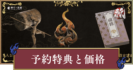 祇を予約購入すると、ゲーム内で使用できる主人公の装備アイテム2個と、デジタルコンセプトアート集が手に入る。 特に、装備アイテムを使うとゲームクリアしやすいため、購入が決まっている場合は事前予約をして特典を受け取っておこう。