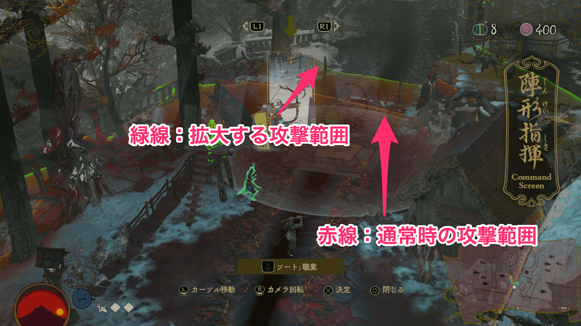 弓取りの攻撃範囲