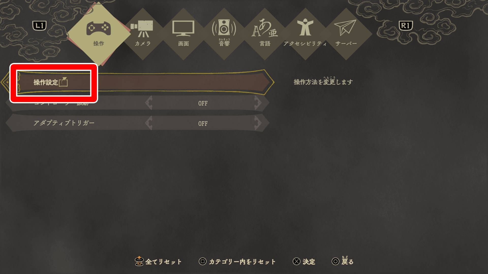 操作方法は、設定の操作設定で変更できる。変更する項目を選択した後、割り当てるボタンを押すと操作方法の変更が完了する。
