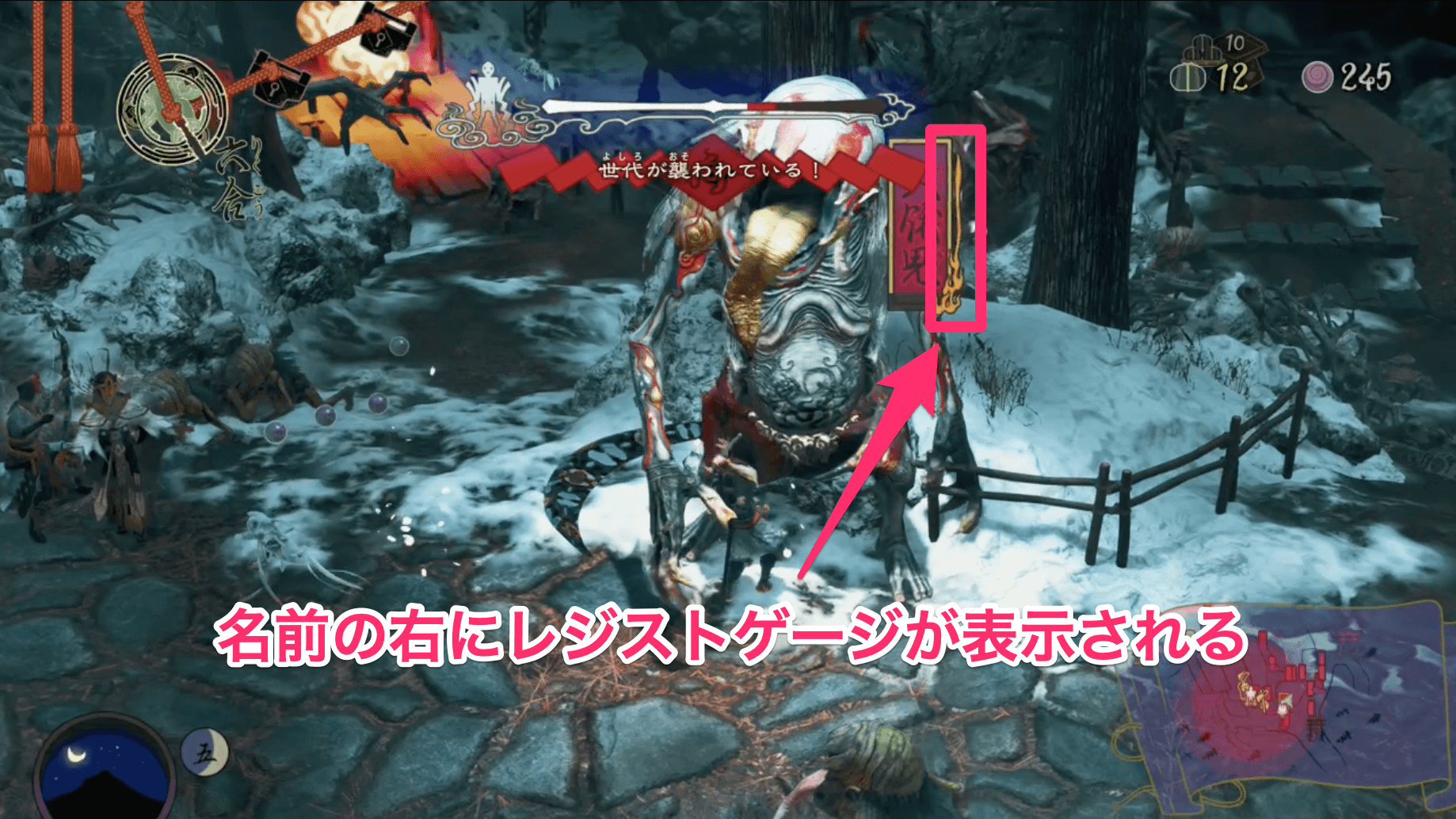 奥深山街道の鳥居(一)の祠から入手畏哭に接触すると爆発する霊蛇をその場に設置する。霊蛇は同時に三体まで設置でき、畏哭のレジストゲージを削る効果がある。 |