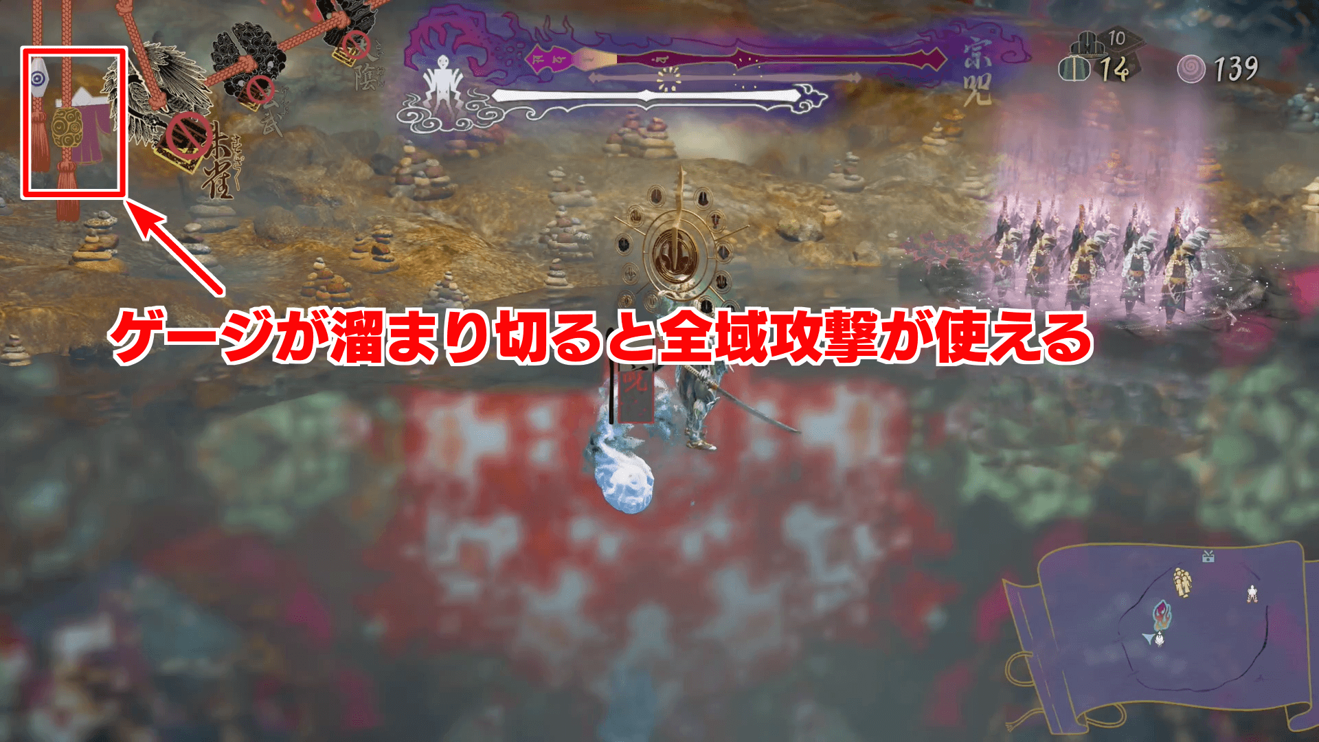 | 悪行罰示神夜になると迎撃用の式神を召喚して援護させるようになる。畏哭のレジストゲージを削る効果がある。 | 30 |