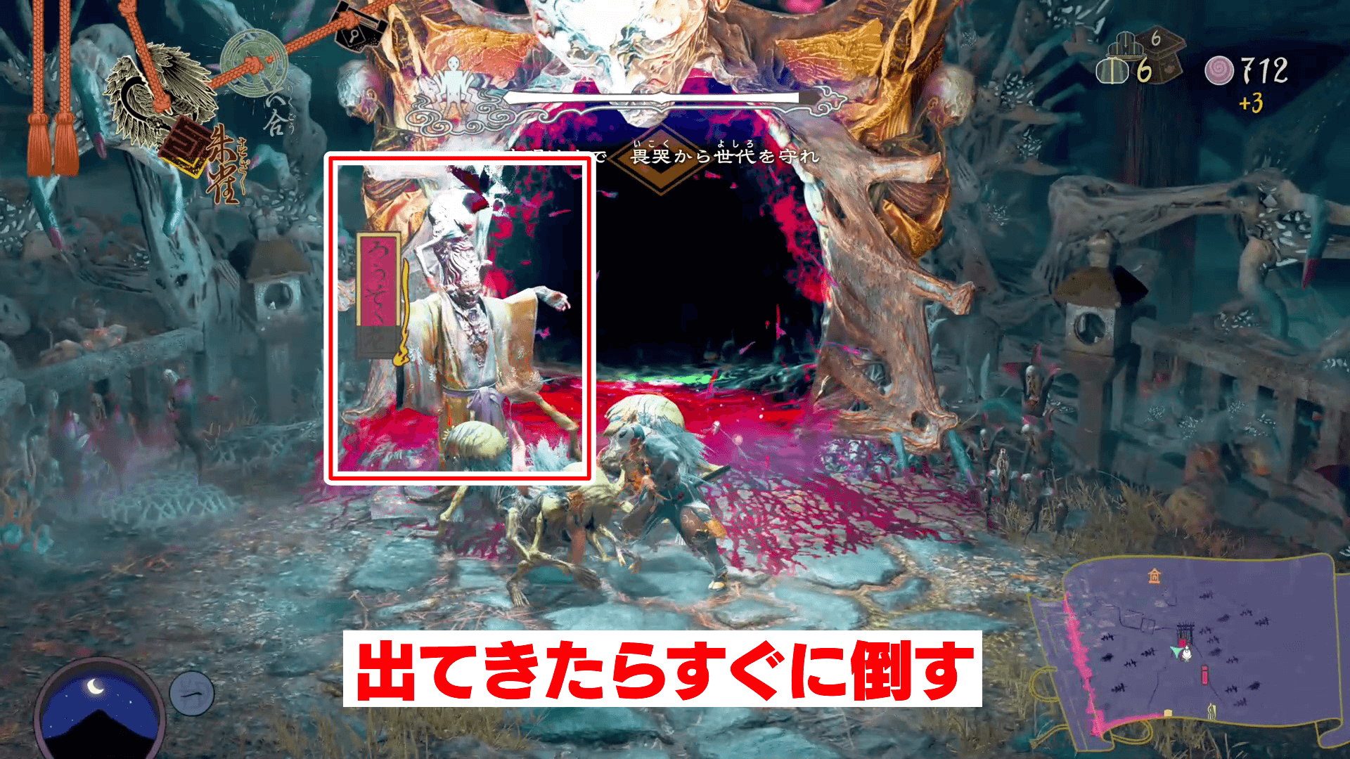 畏哭の呪炎化を30体解除するには、前半だけでは達成が難しいため、後半で太鼓を優先して修理しよう。後半には壊れた太鼓があり、ろうそく老も引き続き出現するので、活用できればより多くの畏哭の呪炎化を解除できる。