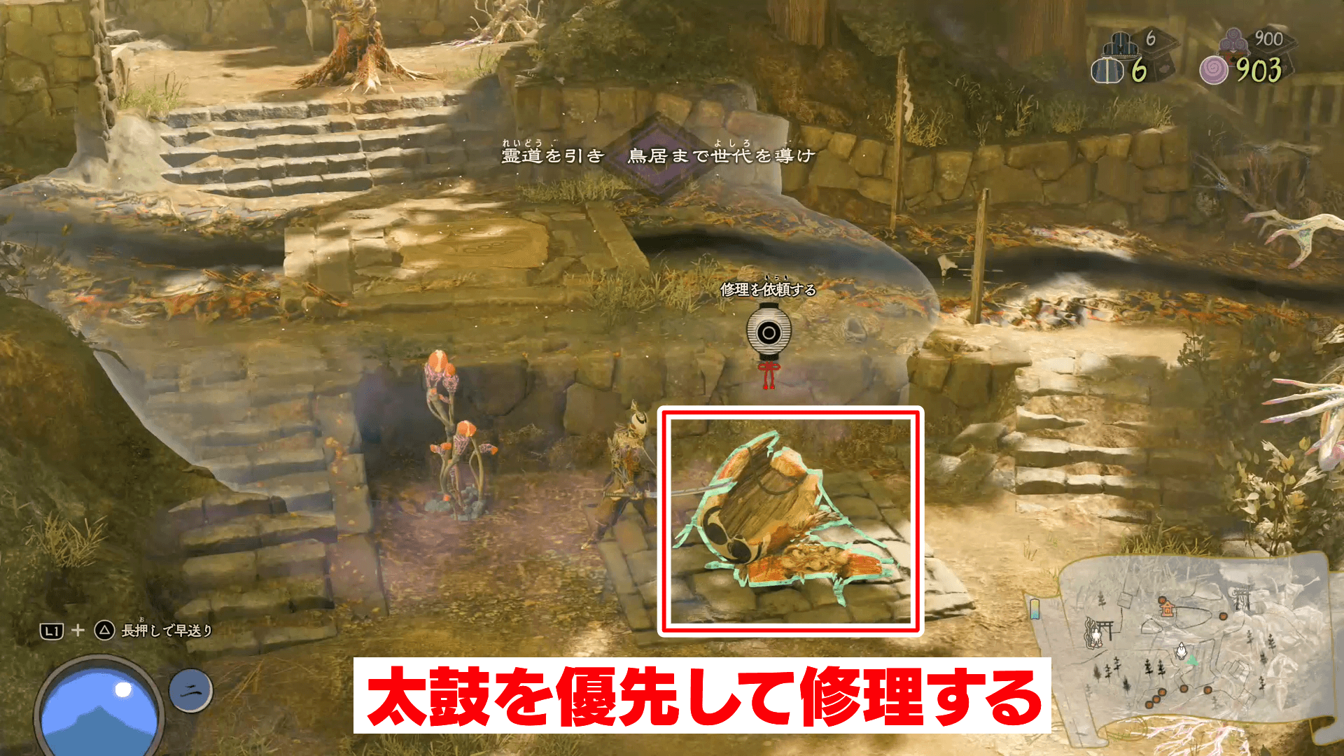 後半で太鼓を優先して修理する