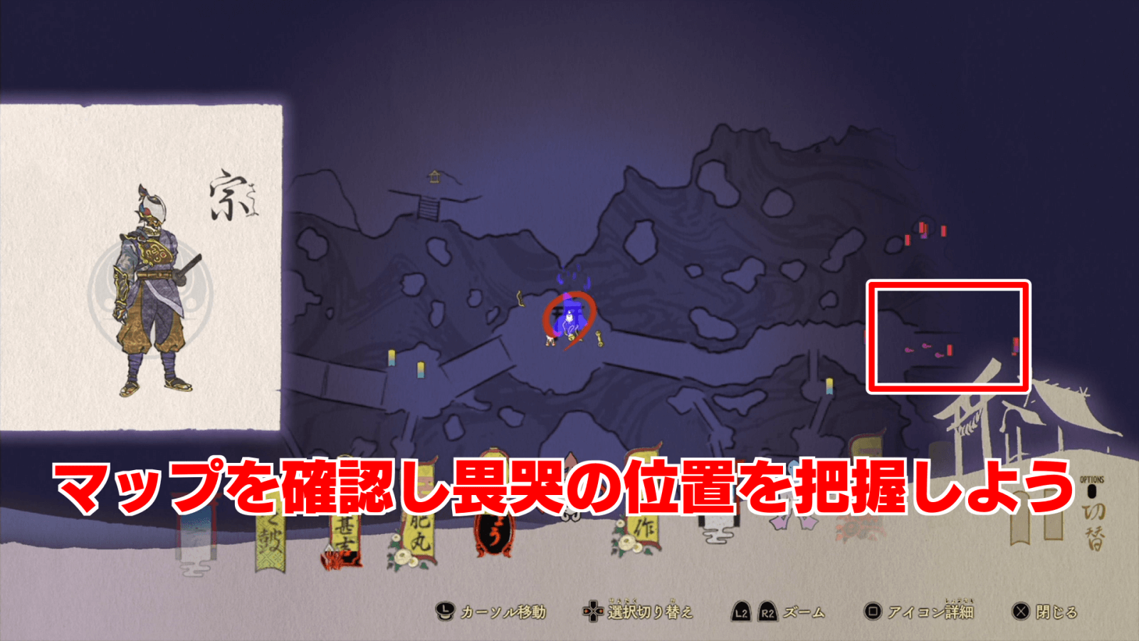 マップを確認し畏哭の位置を把握しよう