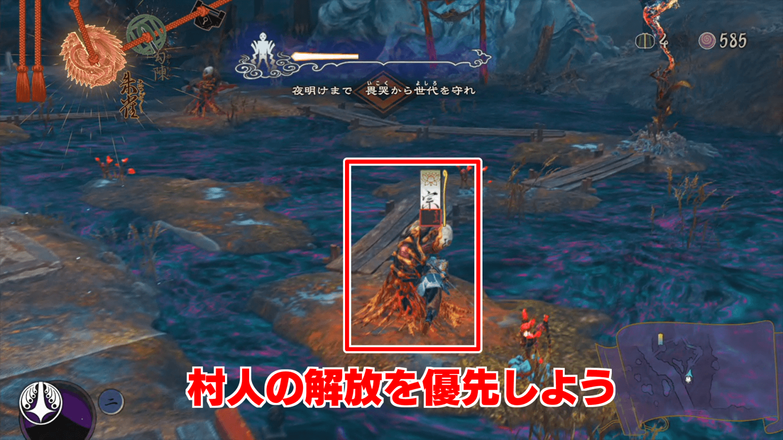 後半エリアの攻略においては、戦力を強化するために、穢れ祓いより村人の解放を優先しよう。特に、前半エリアの攻略を2回で済ませた場合は残り時間が少ないので、2日目は村人の解放を最優先で進めるのがおすすめだ。