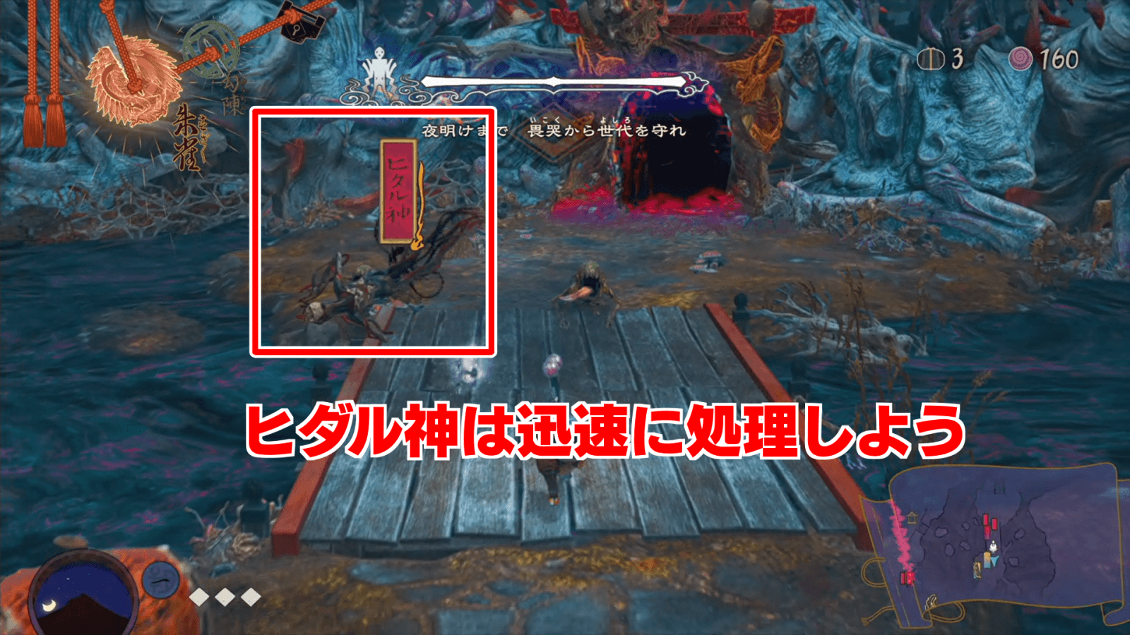 | 世代が一度もダメージを受けない常にマップを確認し畏哭の位置を把握しておく |