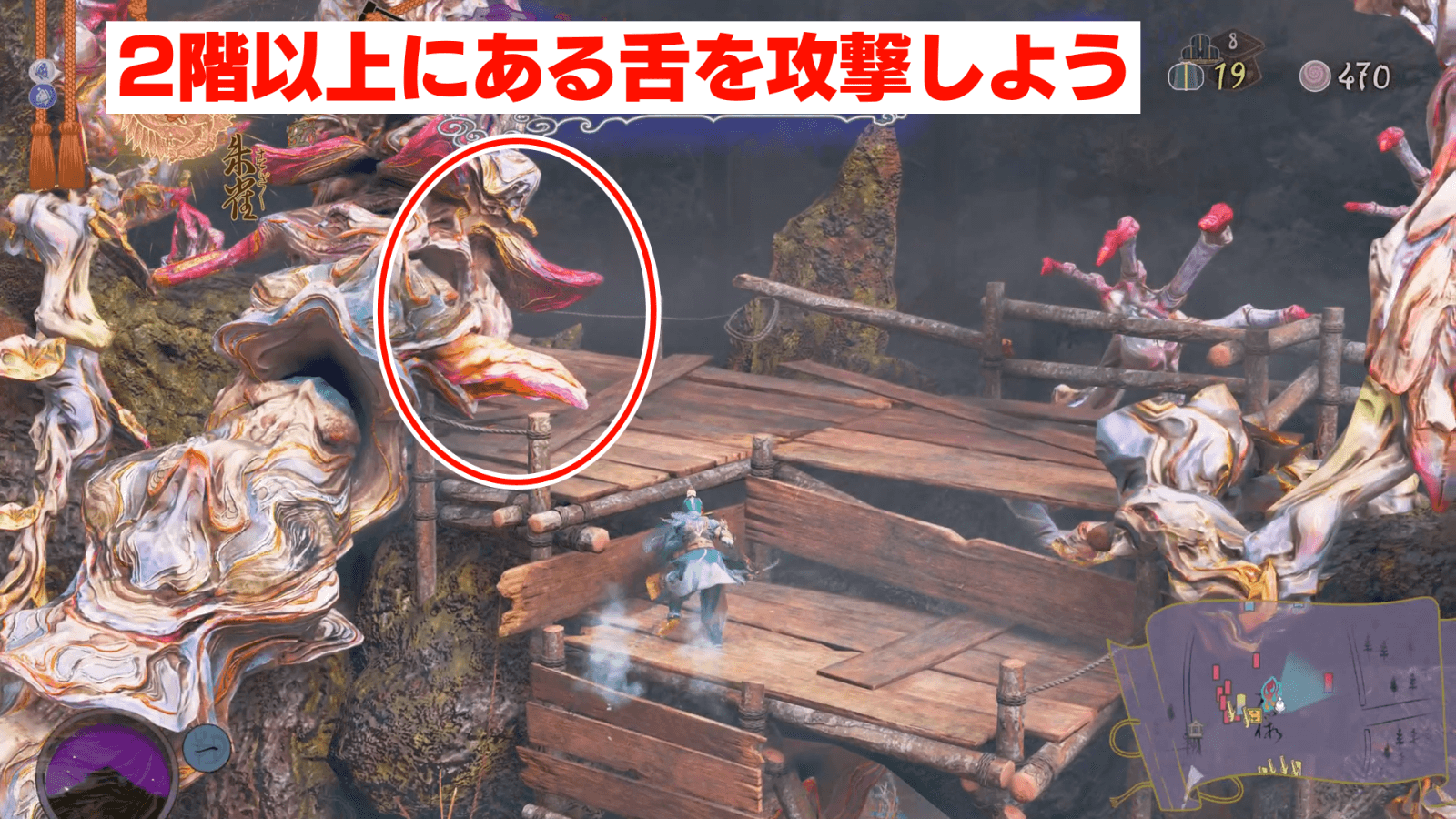 | 大樹から生えている舌を攻撃しよう |