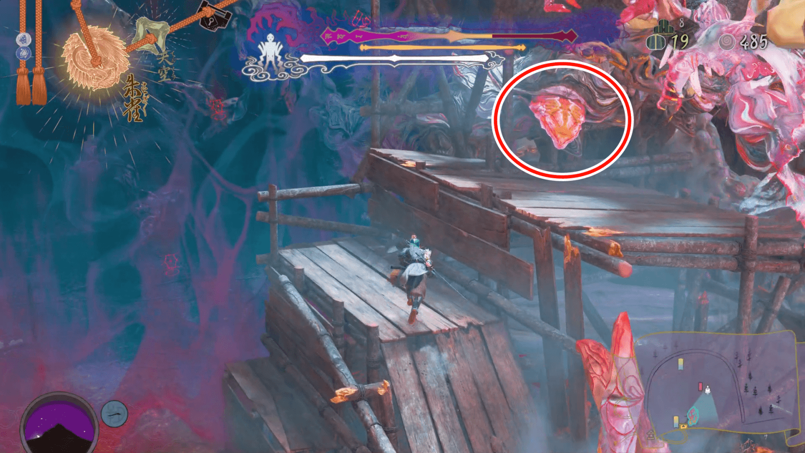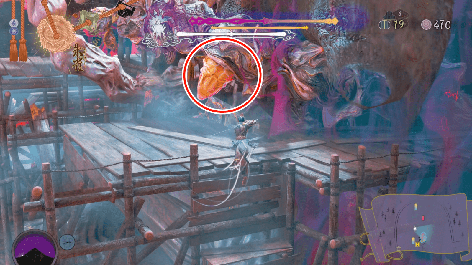3箇所の舌を倒すとムービーが入り、村人が撤退して八面王の根と舌との戦いになる。根を攻撃してもダメージが通らないため、被弾を最小限に抑えつつ舌を攻撃しよう。左右に現れる舌を倒せばさらにフェーズが進み、八面王との戦いになる。