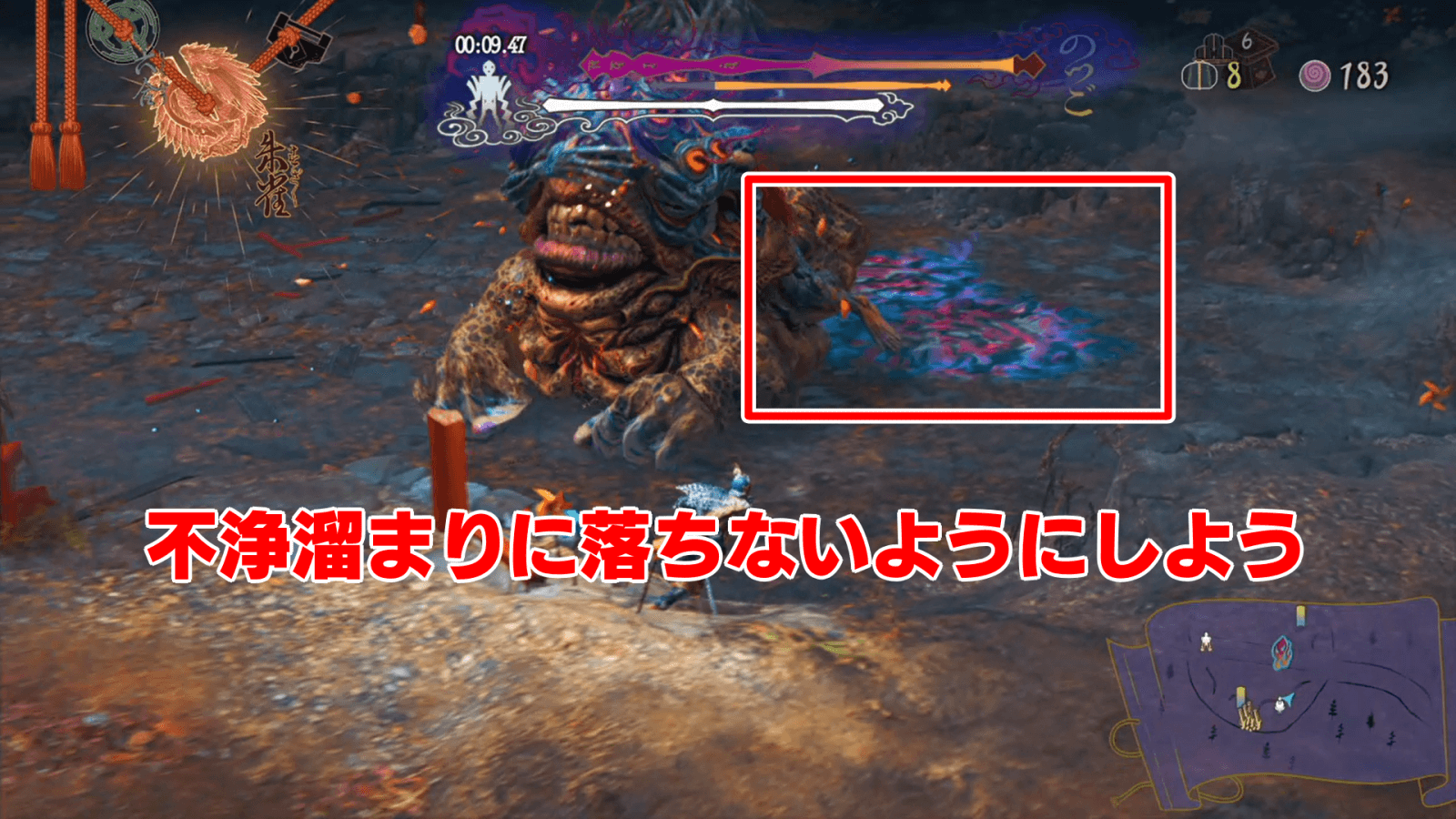 のつごの近くにある 不浄溜まりに落ちるとダメージを受けるため、なるべく落ちないようにしよう。また、村人が不浄溜まりにいる際は、陣形指揮を使って迅速に村人を移動させるのがおすすめだ。