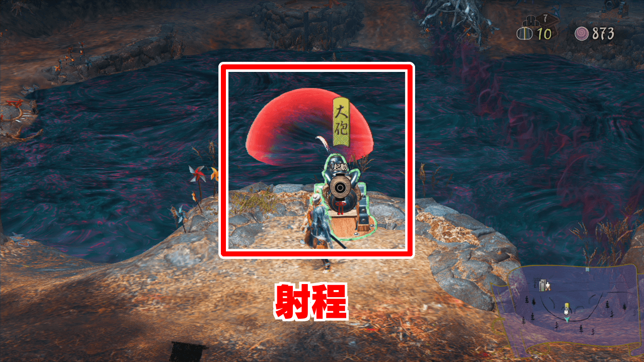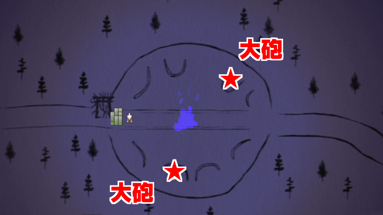 大砲の位置と射程