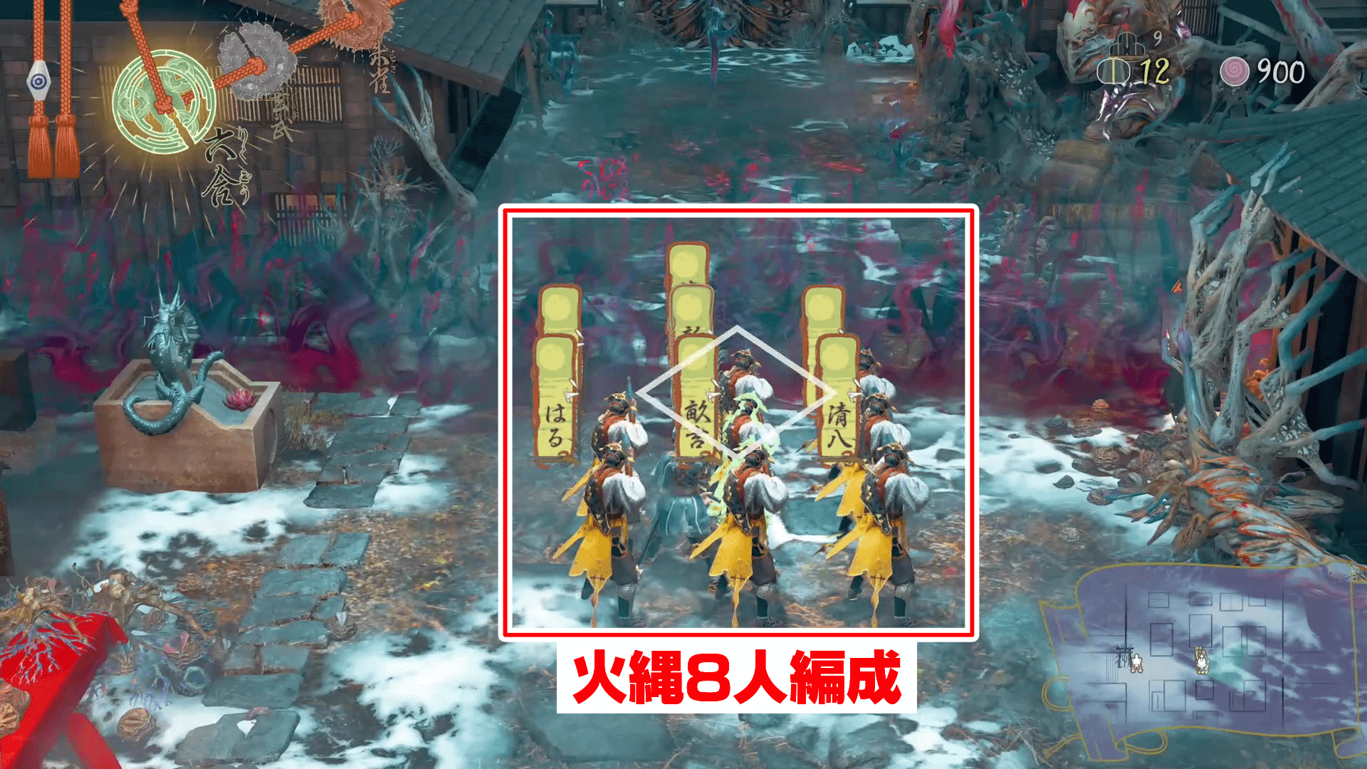 やつかはぎが穢れ鳥居を出現させたら、出現する畏哭を処理しよう。大型の畏哭も出現するため、放置していると世代に攻撃されて戦闘が終わってしまう。出現した畏哭を宗1人で対応できる場合は、村人にやつかはぎを追わせておけばダメージを稼げる。